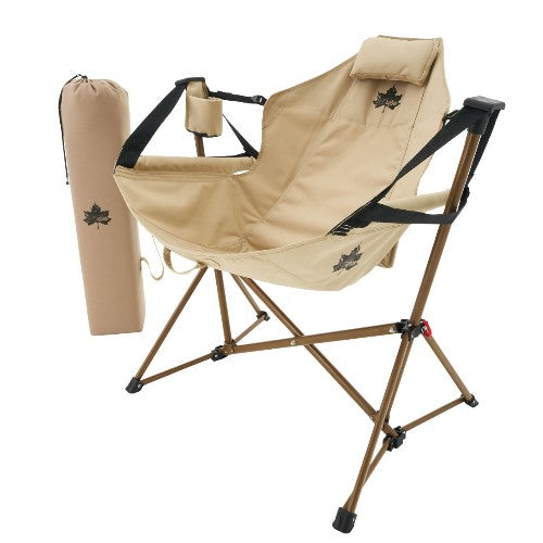 可作吊床和椅子的 2WAY相容的新專案。 索帶可輕鬆調節靠背角度,並配有頭枕和飲料架。 可以舒適地搖動。 組裝設計,超薄存放,攜帶舒適。